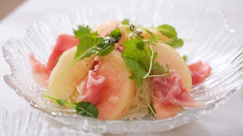 桃と生ハムの冷製カッペリーニ。