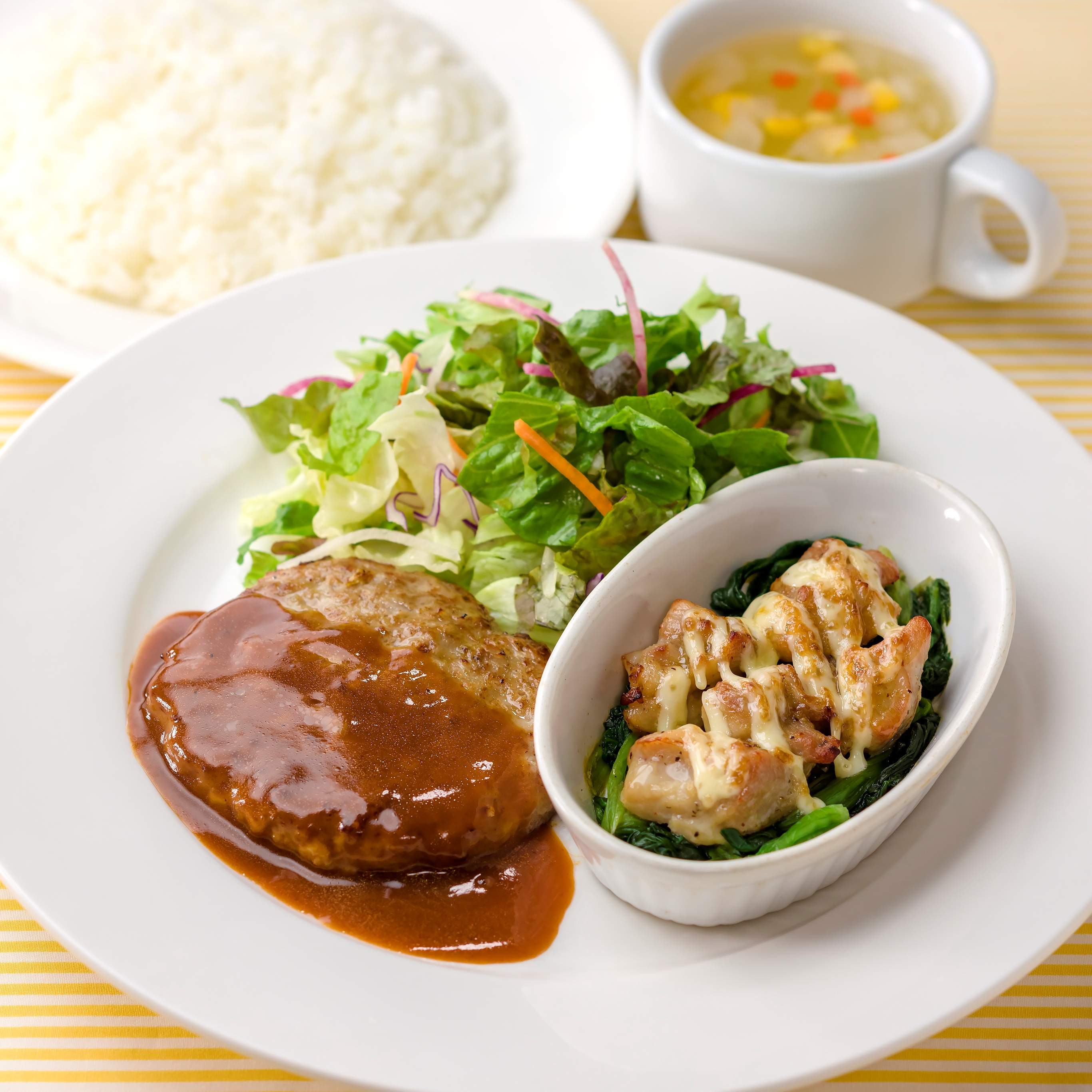 日替わりランチ ハンバークデミソース&チキングリル醤油ソース 700円ガスト越谷市増森 ましもり のやまたけちゃんのブログ - 楽天ブログ。