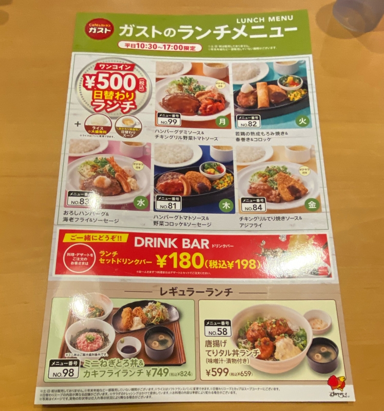 ガスト 平日限定の日替わりランチはコスパ良好!ヒースブログ。