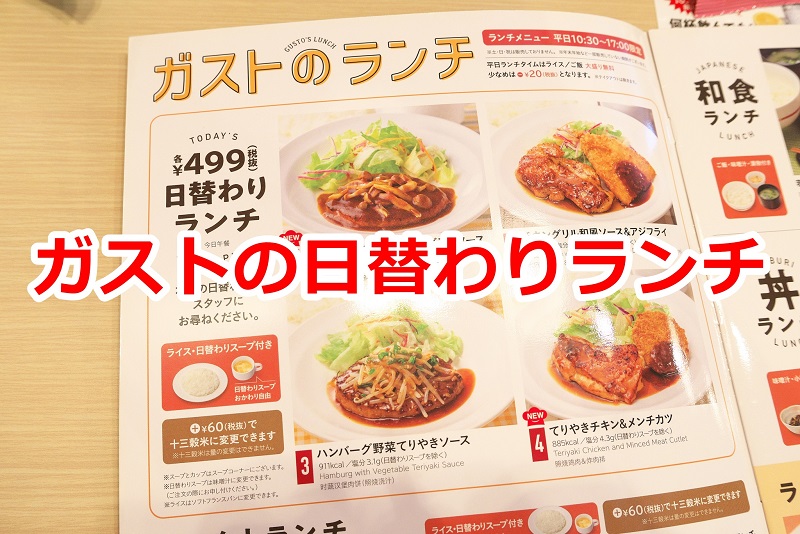 ガストの日替わりランチが税抜き499円でかなりお得!4種類あるメニューの中のてりやきチキン&メンチカツを食べてみた - とくとみぶろぐ。