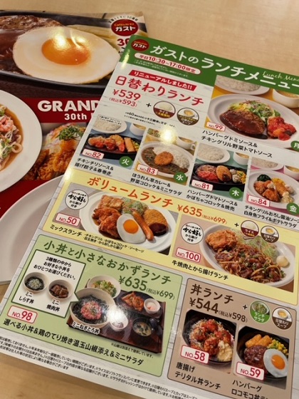 ガスト ランチメニュー 口コミ評判レビュー体験ログ。