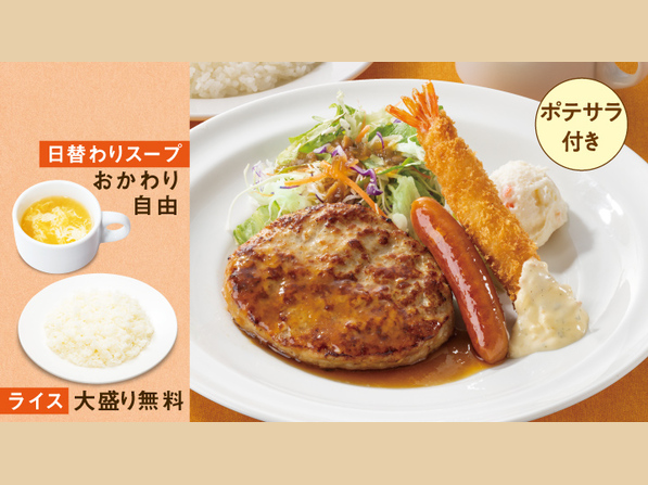 火 日替わりランチ ハンバーグデミグラスソース&若鶏の唐揚げランチ 日替わり グリル ライトミール ガスト ファミリーレストランすかいらーくグループ。