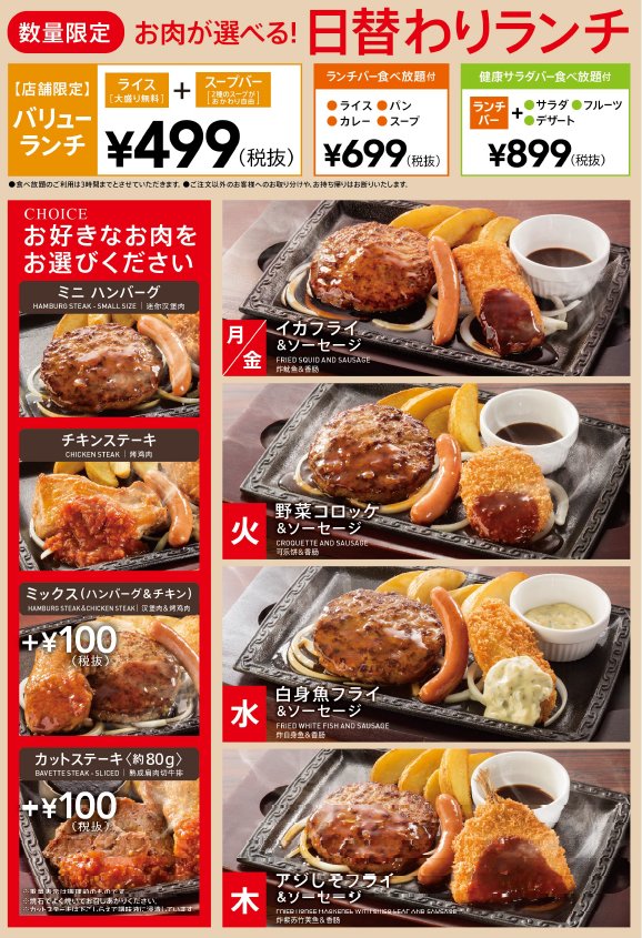 ステーキガストの日替わりランチは食べ放題付きでお得感ありTeamSEEK。