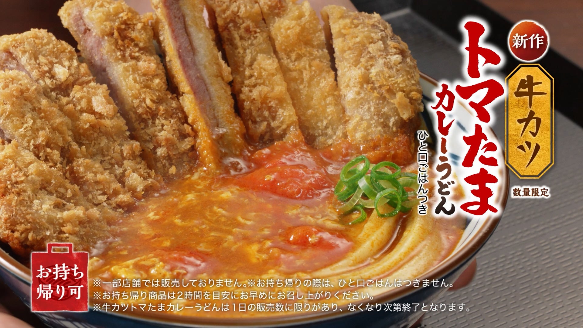 丸亀製麺から「牛カツトマたまカレーうどん」が新登場!揚げたてサクサクの牛カツをのせた、数量限定の新商品です -新商品・新発売情報 進撃のグルメ。