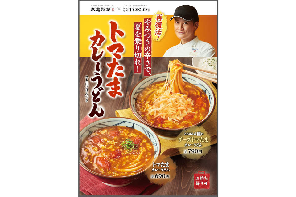 TOKIO松岡と丸亀製麺「トマたまカレーうどん」の新作は冷やし、豆乳追加 - 音楽ナタリ。