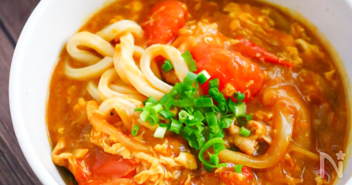夏のトマトカレーうどん だし×トマトの旨味!止まらぬ旨さ♡。