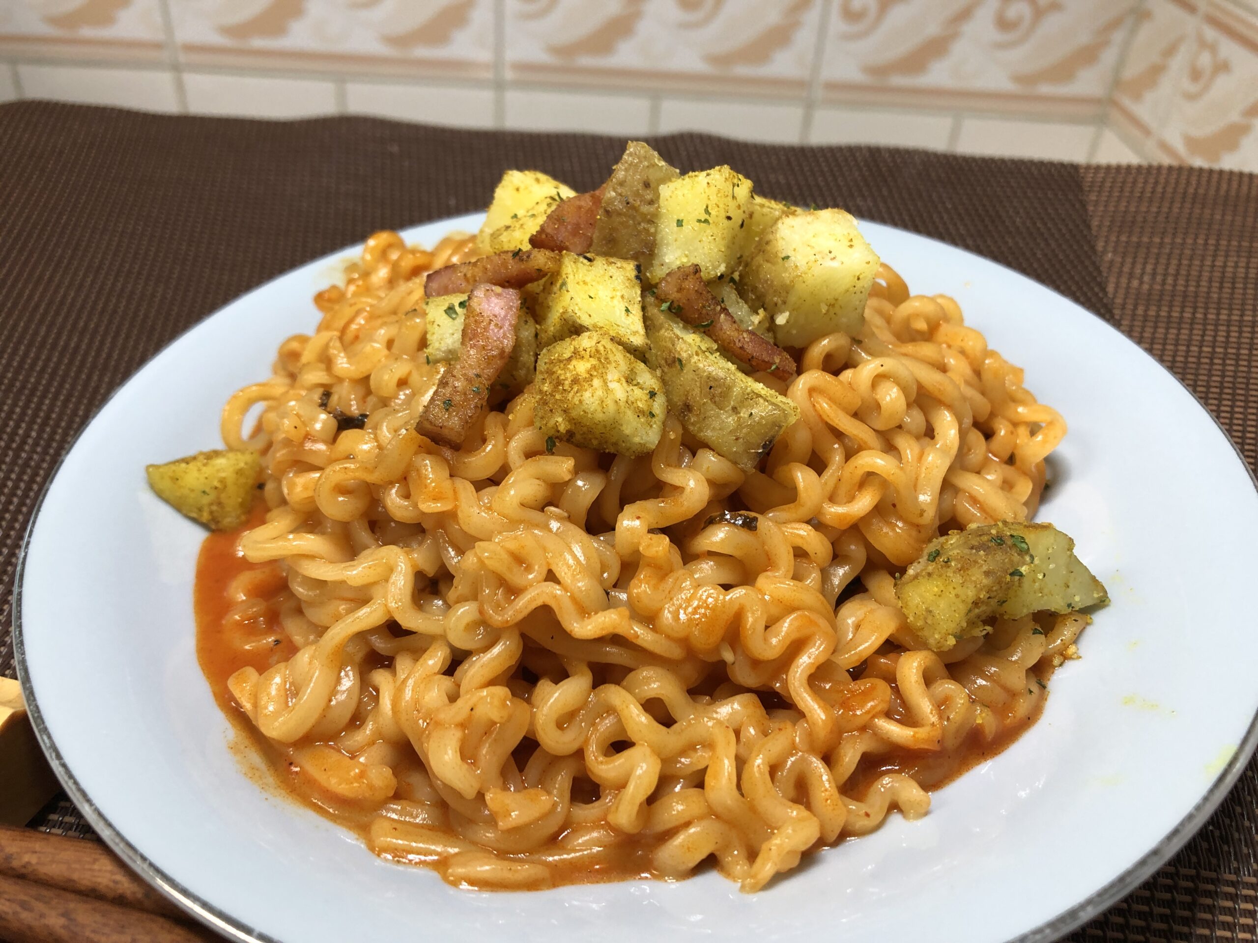 プルダック麺アレンジ!カルボナーラ麺♡。