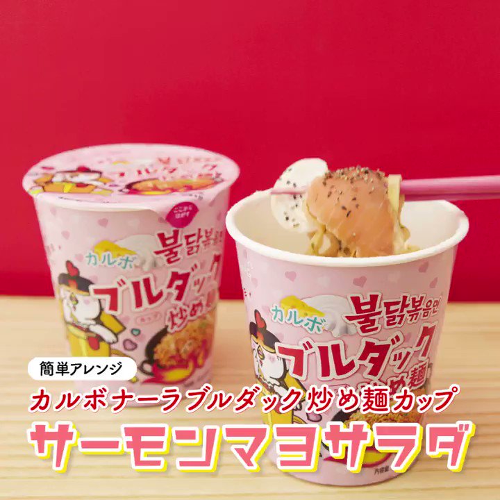 カルボブルダック炒め麺カップを使った, "サーモンマヨサラダ"アレンジレシピのご紹介です✨,マヨネーズ、サーモン、スライスオニオンをトッピングするとサラダ風に仕上がります!, ぜひお試しください🔥,ブルダックブルダック炒め麺激辛激辛大好き激辛グルメサラダ韓国韓国麺プルダックポックンミョン韓国インスタントラーメンアレンジレシピレシピ動画サーモン。