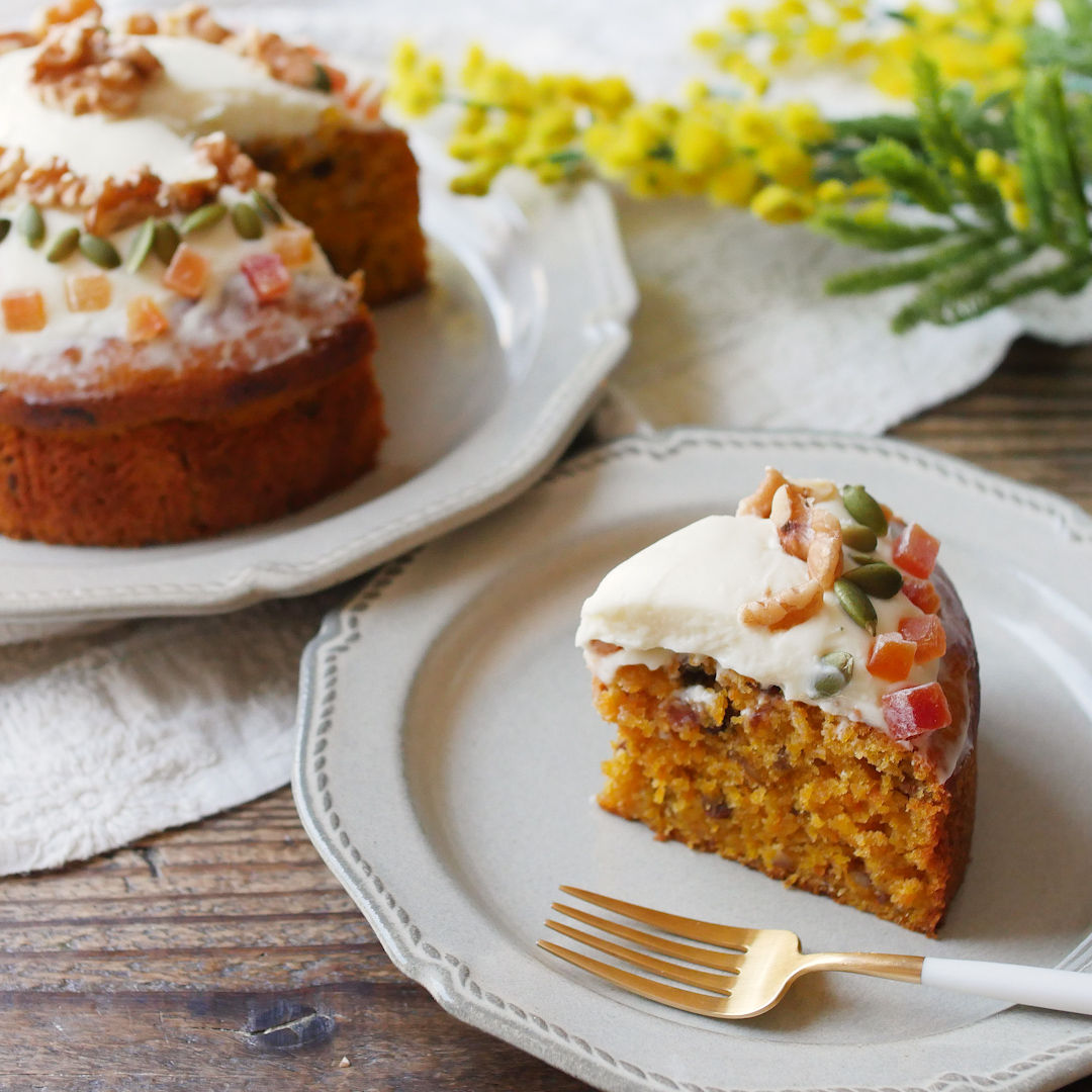 スパイス香る甘さ控えめキャロットケーキ。