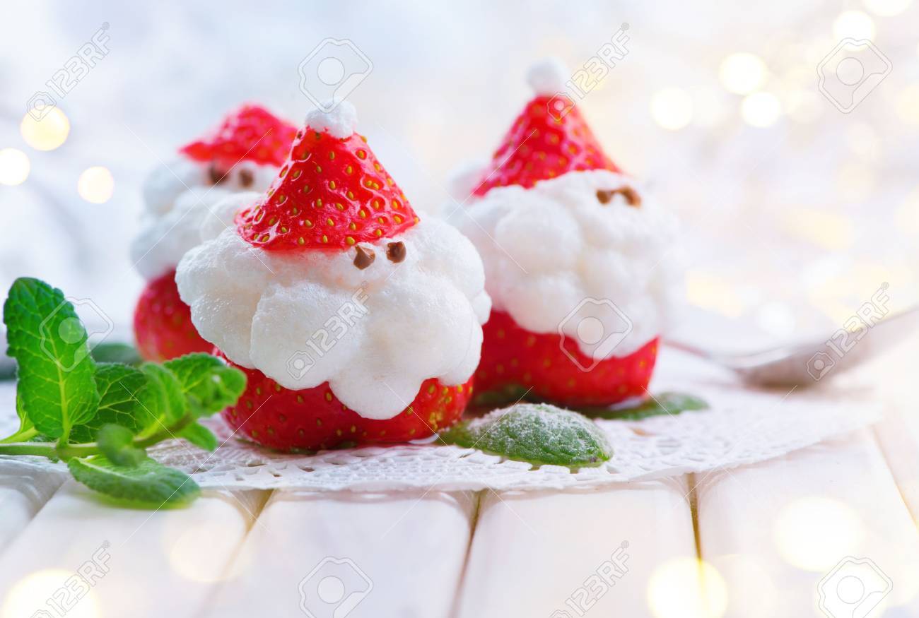 クリスマスいちごサンタ。面白いデザートは、ホイップ クリームを詰めています。クリスマス パーティー料理アイデアの写真素材・画像素材 Image66831948。