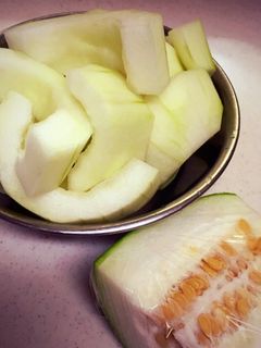 冬瓜の下ごしらえ。