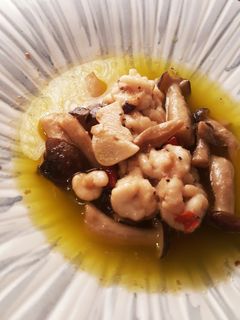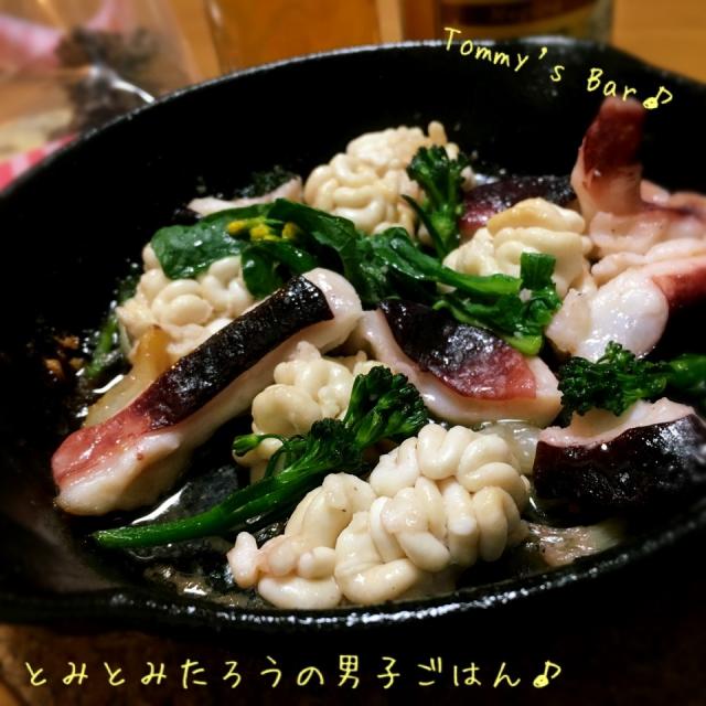 タコと真鱈の白子と菜の花のアヒージョ とみとみたろうの男子ごはん♪Snapdish スナップディッシュID:DyumLa。