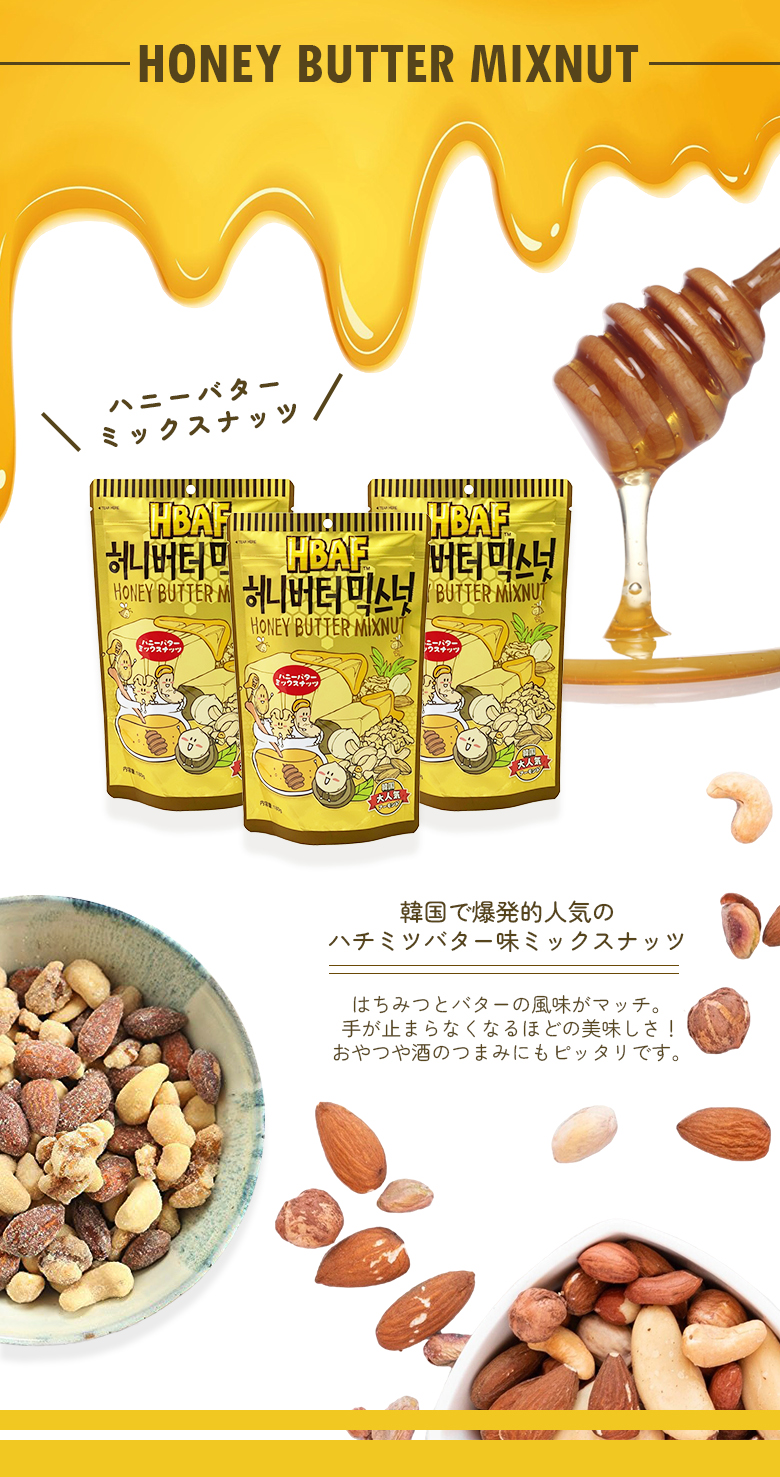 楽天市場ハニーバターミックスナッツ 180g HBAF韓国 お菓子 ナッツ おやつ お土産 ハニーバター アーモンド 韓国お菓子 おつまみギフト プレゼント おかし 韓国食材 ハニーバターナッツ スナック 韓国菓子 ハニーバターアーモンド : 韓流厳選グルメキムチランド。
