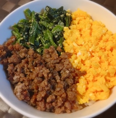 甘辛そぼろの三色丼 10分で即完成♡ごはんとの相性抜群。