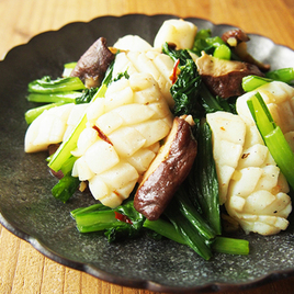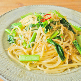 小松菜としらすのめんつゆ炒め。