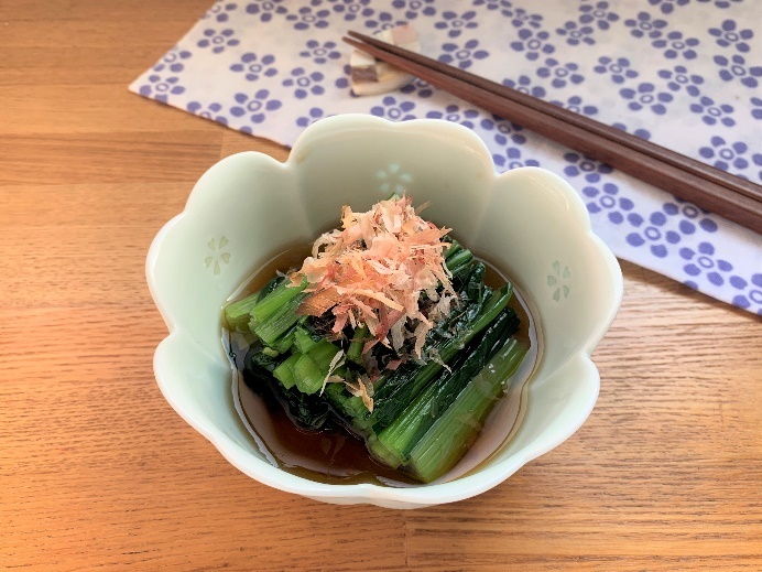 めんつゆで味つけ小松菜のおひたし。