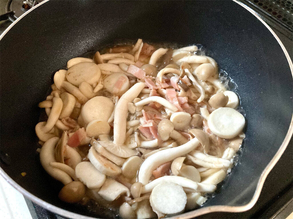 キノコ好き集合 きのこの酒蒸し – リュウジのバズレシピメモ 作り方・コツ・感想It's a piece of cake。