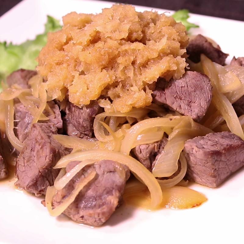 ダイヤモンドカットでやわらか!牛モモの和風ステーキ丼。