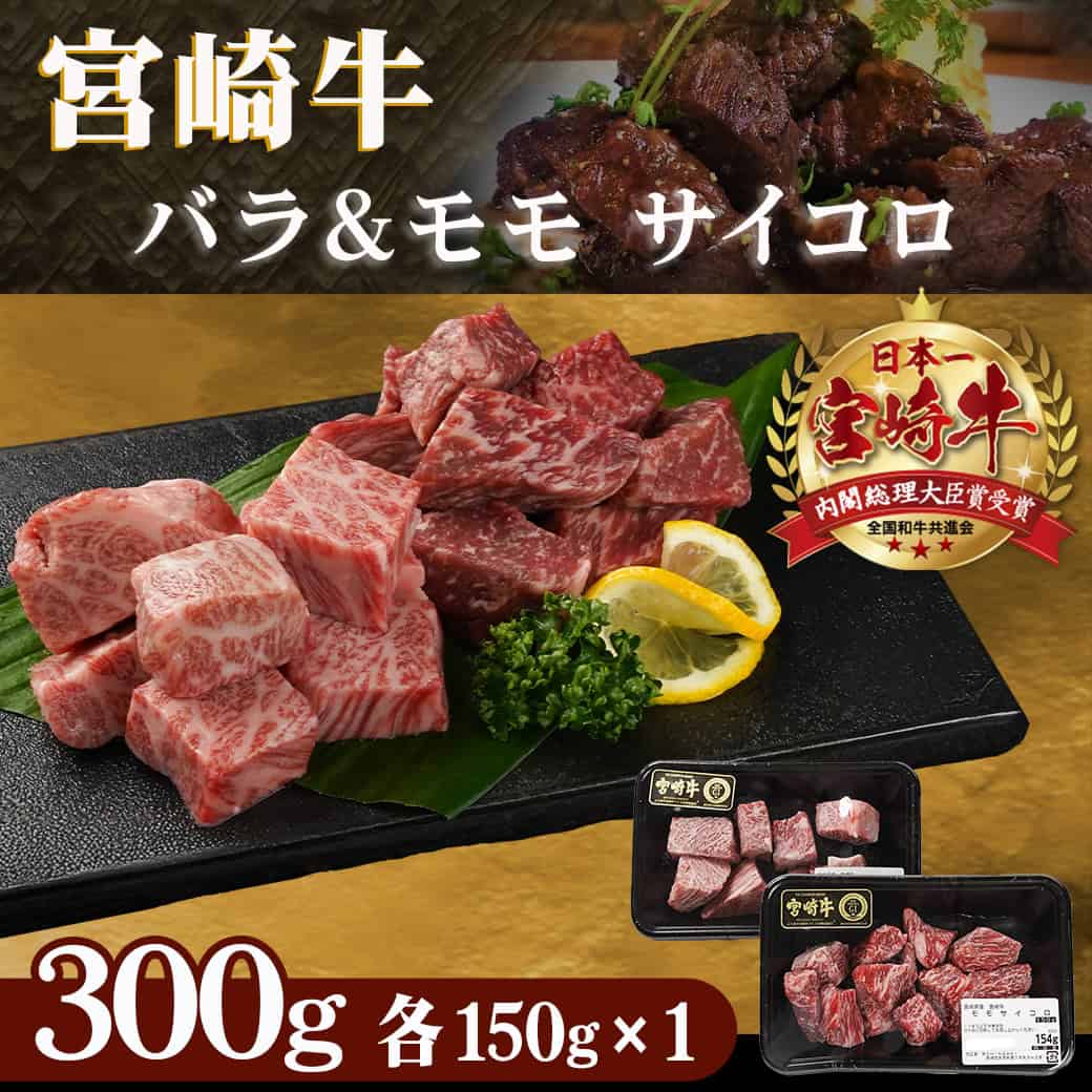 ふるさと納税 宮崎牛バラ&モモサイコロ300gセット - 宮崎県産宮崎牛 A4・A5ランク サイコロステーキ 牛バラ肉 牛もも肉 ステーキ用150g×2P カット済み 国産牛肉 黒毛和牛 壱万円 贅沢 部位食べ比べ 送料無料 AA-M402宮崎県都城市は2年連続ふるさと納税日本一!。