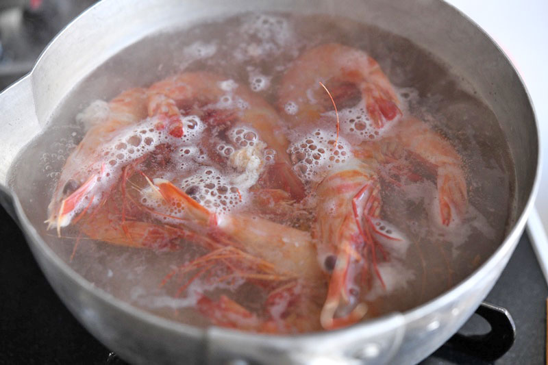 オマール海老、伊勢海老を茹でる。