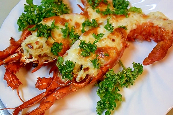 グラタン風♪ 伊勢海老のマスタードグリル。