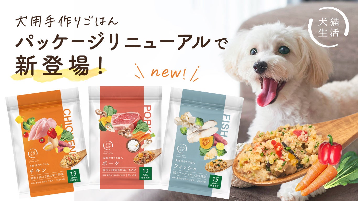 犬猫生活、わんちゃん用手作りごはん、素材感たっぷりのパッケージにリニューアルして新登場 6月上旬~犬猫生活株式会社のプレスリリース。