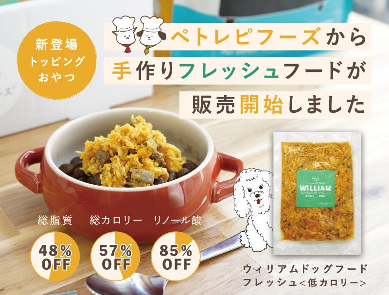ペトレピフーズが愛犬のダイエットを意識した「ウィリアムドッグフードフレッシュ<低カロリー>」の販売を開始株式会社ナインファイブのプレスリリース。