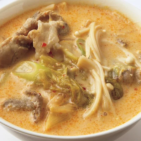 コクのある味わい! 豚バラとニラのみそキムチスープ。