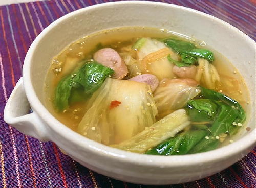 25 05 11 ソーセージとレタスのキムチスープキムチレシピ。