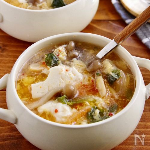 簡単ピリ辛!豆腐と卵のキムチスープのレシピ おすすめアレンジもセブンプレミアム公式。