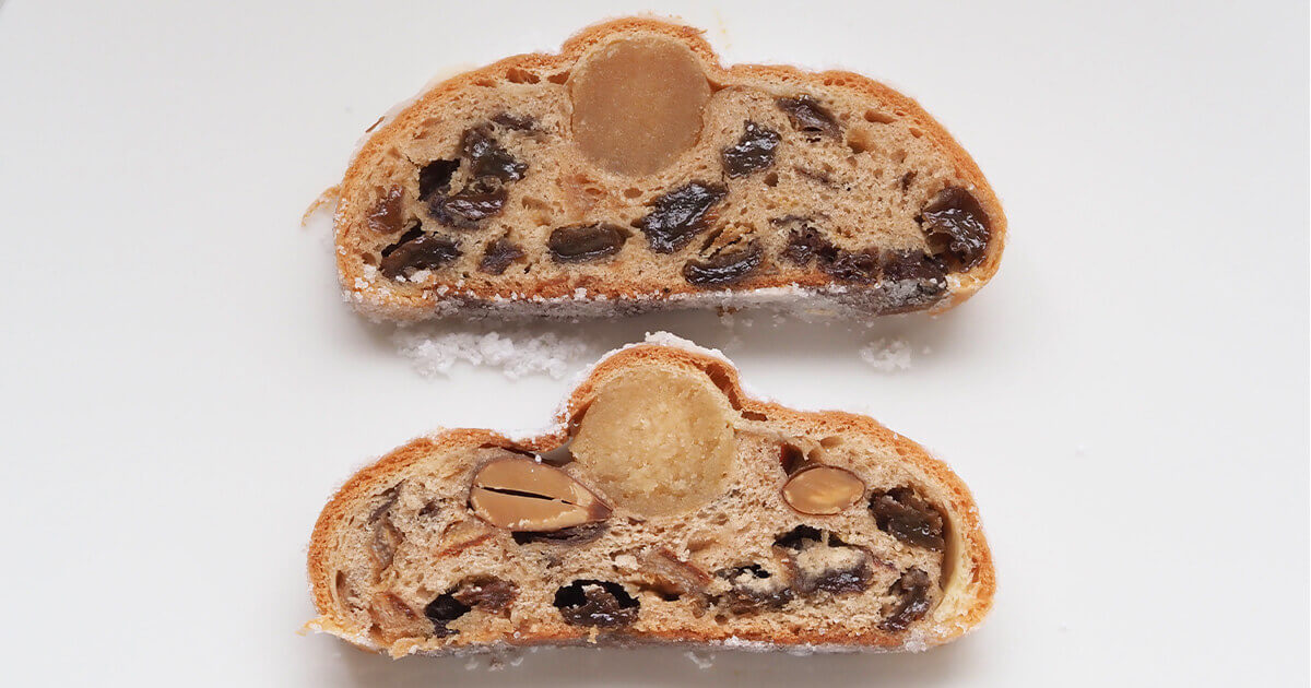 米粉のシュトーレン直径 18 ㎝くらいのもの1本材料-マジパンローマッセ-。
