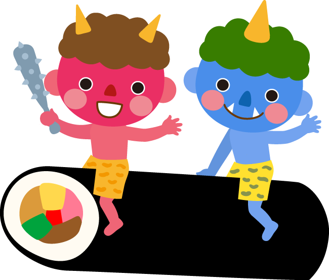 鬼さんと恵方巻かわいいフリーアイコン・イラストの無料素材サイトフリーペンシル。