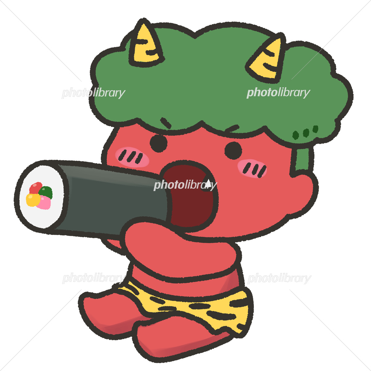 恵方巻を食べるかわいい赤鬼 イラスト素材6239132- フォトライブラリ。