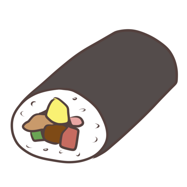 巻き寿司 恵方巻き・太巻きイラスト素材手描きのフリーイラスト素材「かわピク」。