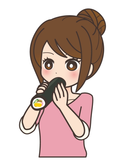 恵方巻を食べる女性のイラスト - 無料イラストのIMT 商用OK、加工OK。