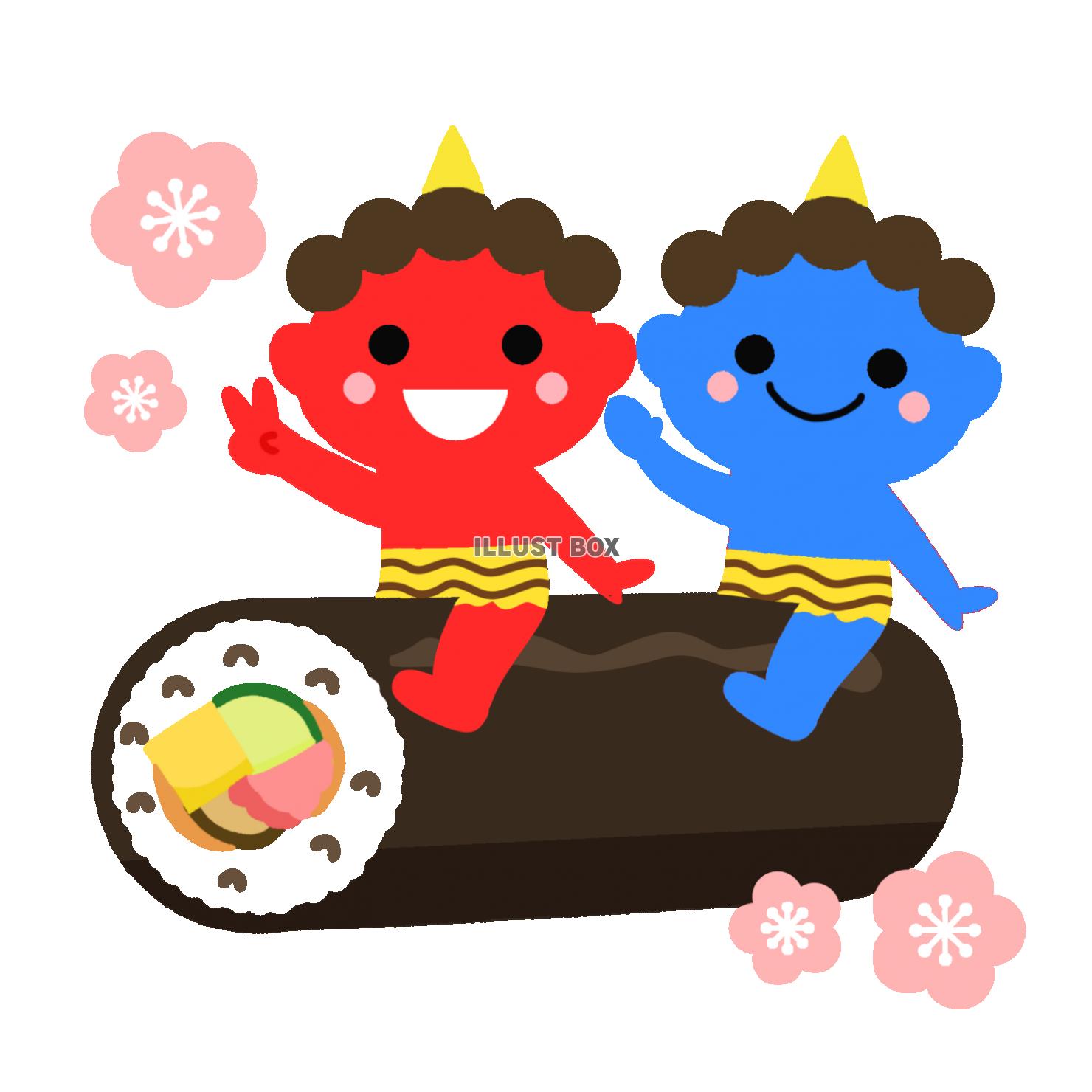 恵方巻きを食べる赤鬼と青鬼のイラスト無料のフリー素材 イラストエイト。