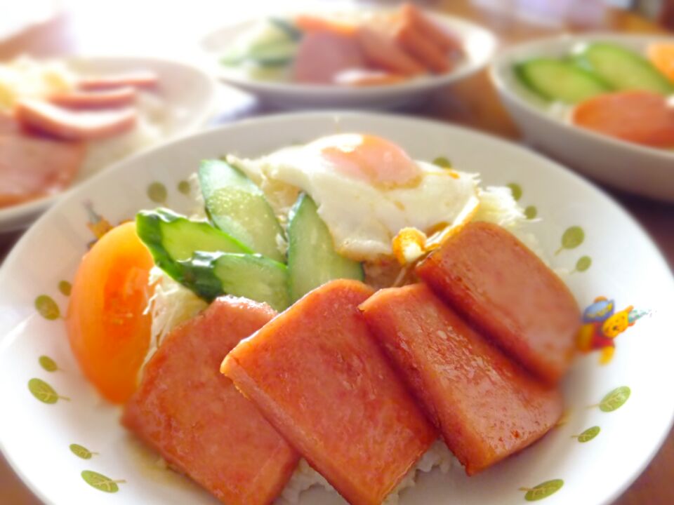 絶品 北斗ファミリーの定番メニュー「やみつきスパムごはん」。