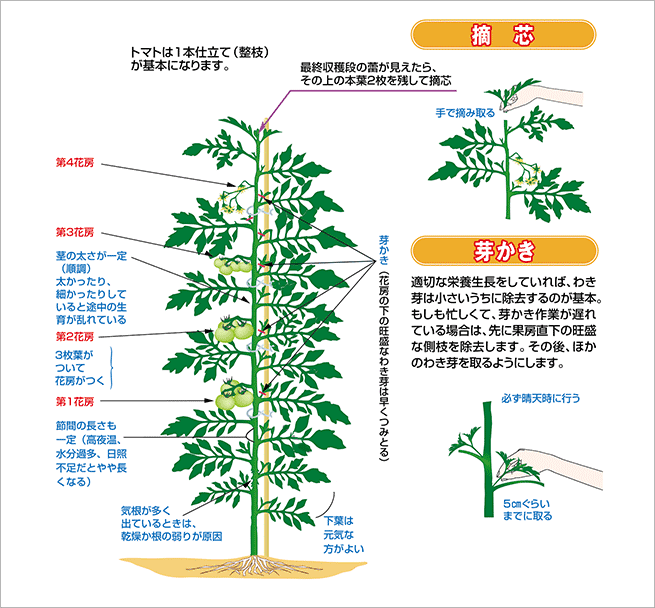ミニトマトの摘心方法!摘む時期・位置を図解でわかりやすく解説 2ページ目BOTANICA。