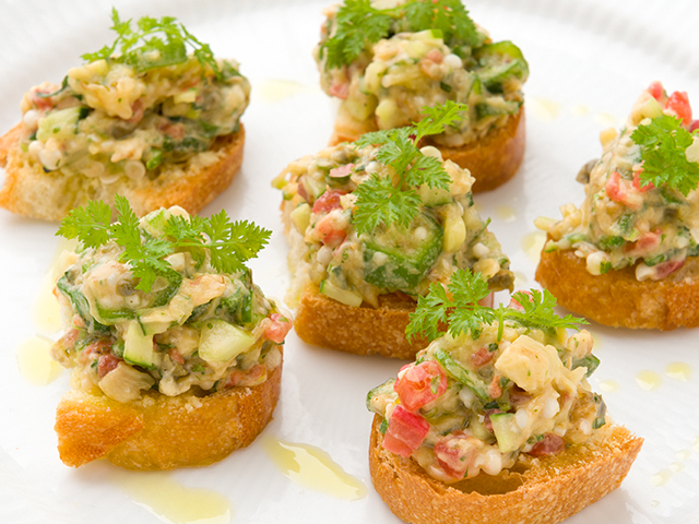 ロースハムと夏野菜のブルスケッタ』~イタリアの前菜 夏野菜でおしゃれに~エア・ウォーターアグリ&フーズ株式会社。