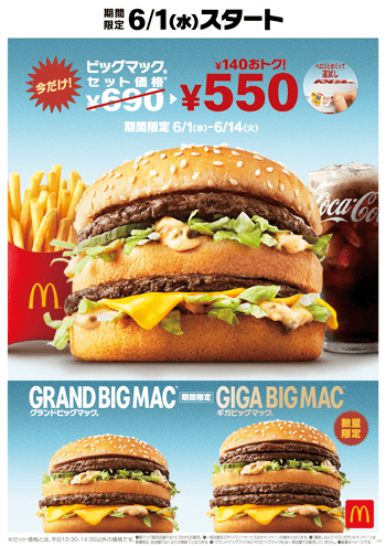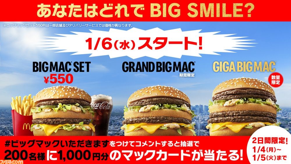 マクドナルド ビッグマックセットが1月6日から550円に。“グランドビッグマック”と“ギガビッグマック”も期間限定で登場ゲーム・エンタメ最新情報のファミ通.com。