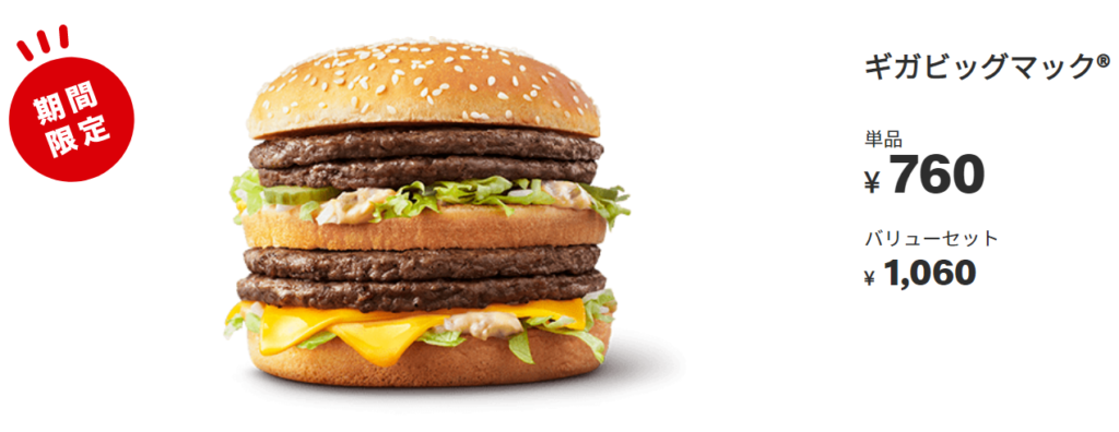 ビッグマックの2.8倍を超えるボリュームのビーフパティ「ギガ ビッグマック」と1.3倍超えのグランドサイズ「グランド ビッグマック」試食レビュー -ライブドアニュース。