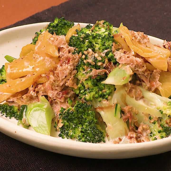 和風な簡単おかず♪ ブロッコリーとつぼ漬けのおかかマヨ和え。