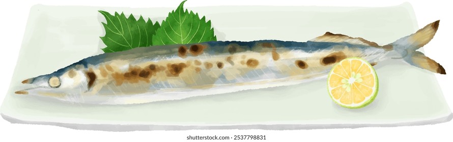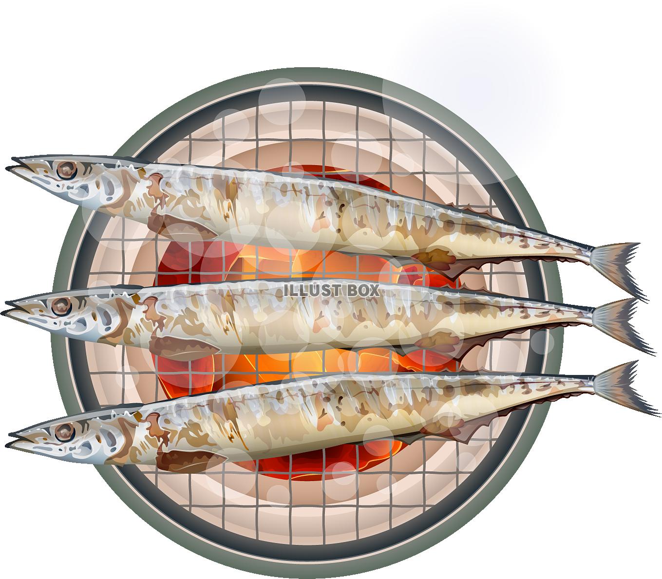 リアルな秋刀魚の塩焼きのイラスト zipファイル: pdf,jpg,透過png :イラスト無料。
