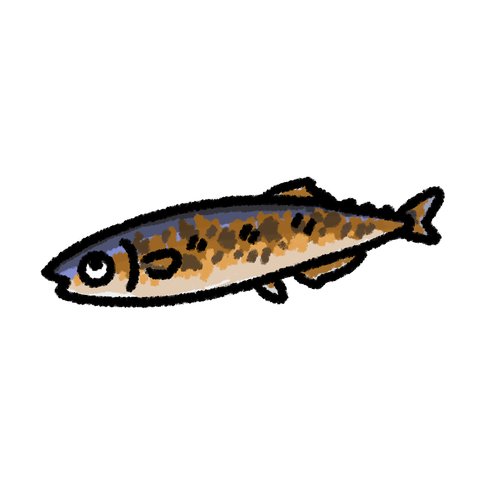 秋サンマ秋刀魚の筆描きイラスト 墨絵フリー素材。