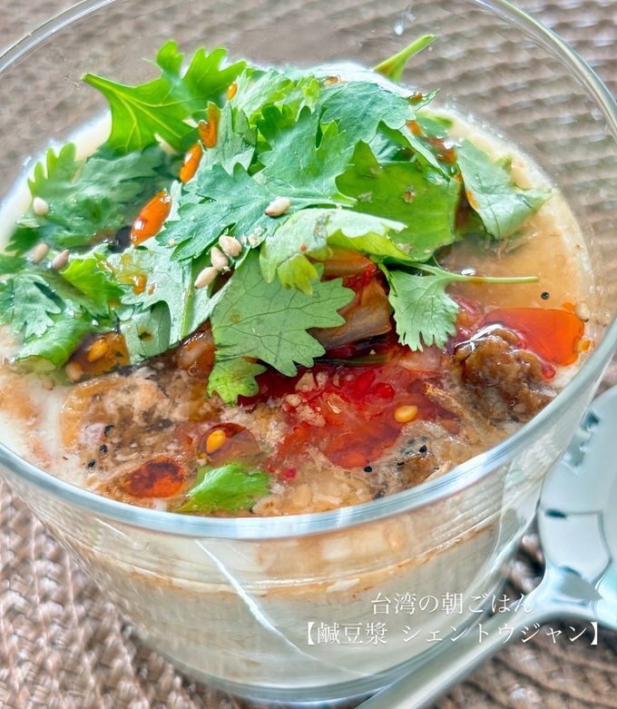 台湾の朝ごはんとして人気「台湾風豆乳スープ鹹豆漿 シェントウジャン」レシピ エダジュンさん。