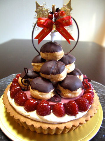 クリスマス☆フランボワーズのタルト&ミニシューお菓子:ケーキフランス料理 デザートレシピ フランス料理総合サイト フェリスィム 〜フレンチ でライフスタイルをもっと素敵に♪。