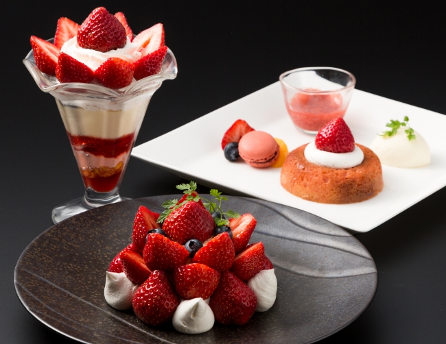 あまおう」など、旬のいちごを楽しめる 「いちごフェア」。デザートのほか、フランス料理や鉄板焼、カクテルでもいちごのメニューが登場。株式会社リーガロイヤルホテル広島のプレスリリース。