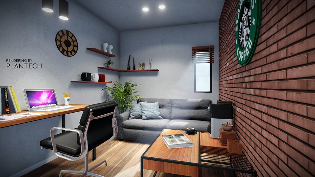 DIYで作る書斎の完成イメージパース スタバ好き編PLANTECH。