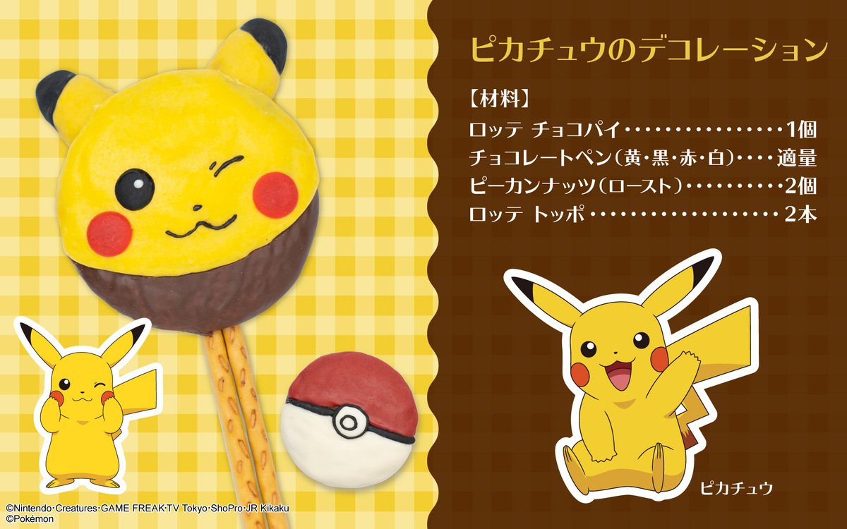 ロッテ チョコパイ 公式على X: "@shiho_x901x \ピカチュウをゲット!!ロッテトッポを使ったピカチュウのレシピを手にいれた! チョコペンを使って作ってみよう!チョコパイアートwithポケモンhttps:t.co O4bwlSCvDC"X。