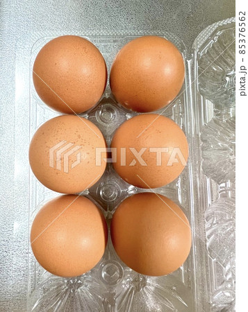透明の卵パックに入った6個の卵の写真素材85376562- PIXTA。